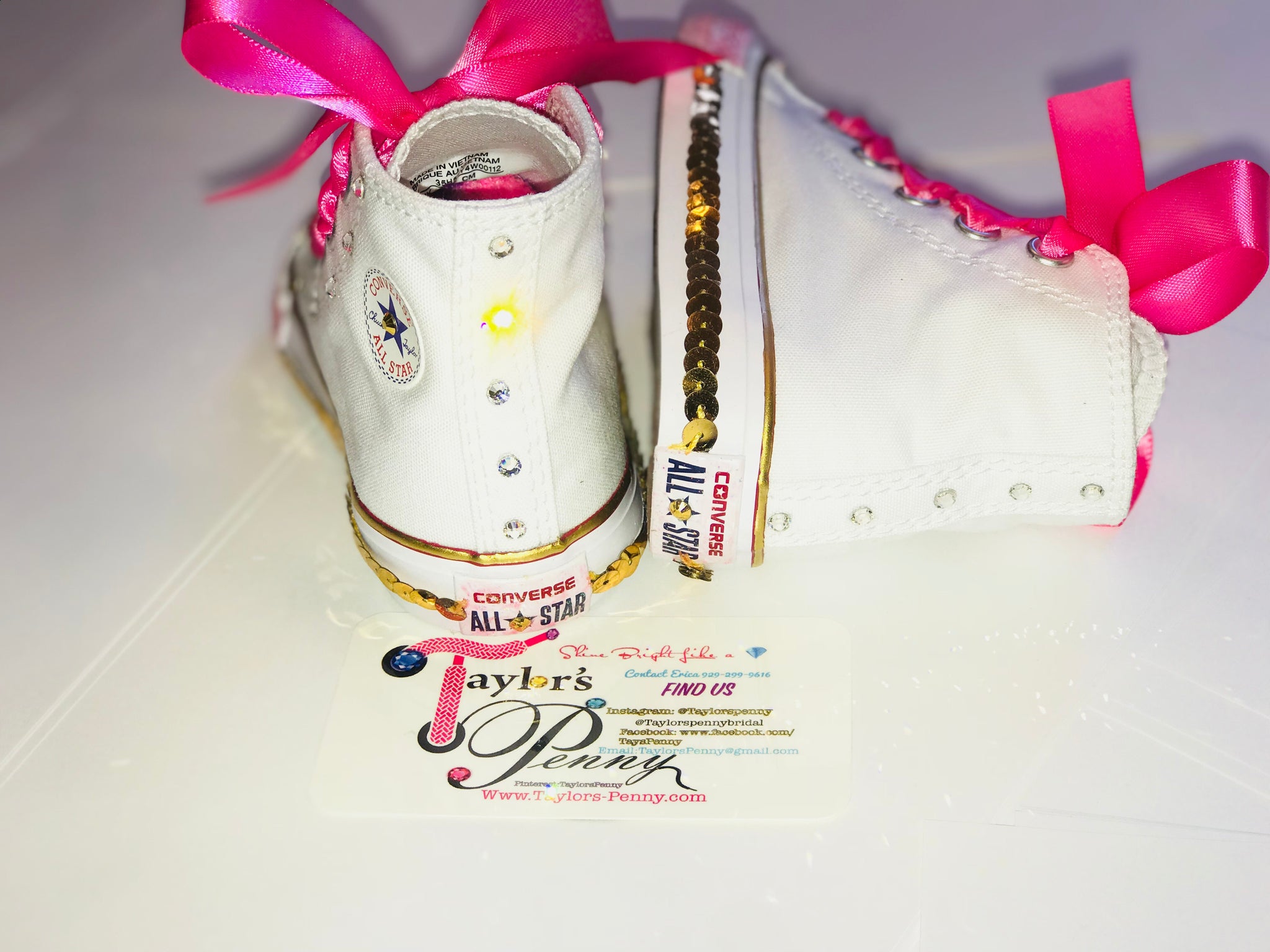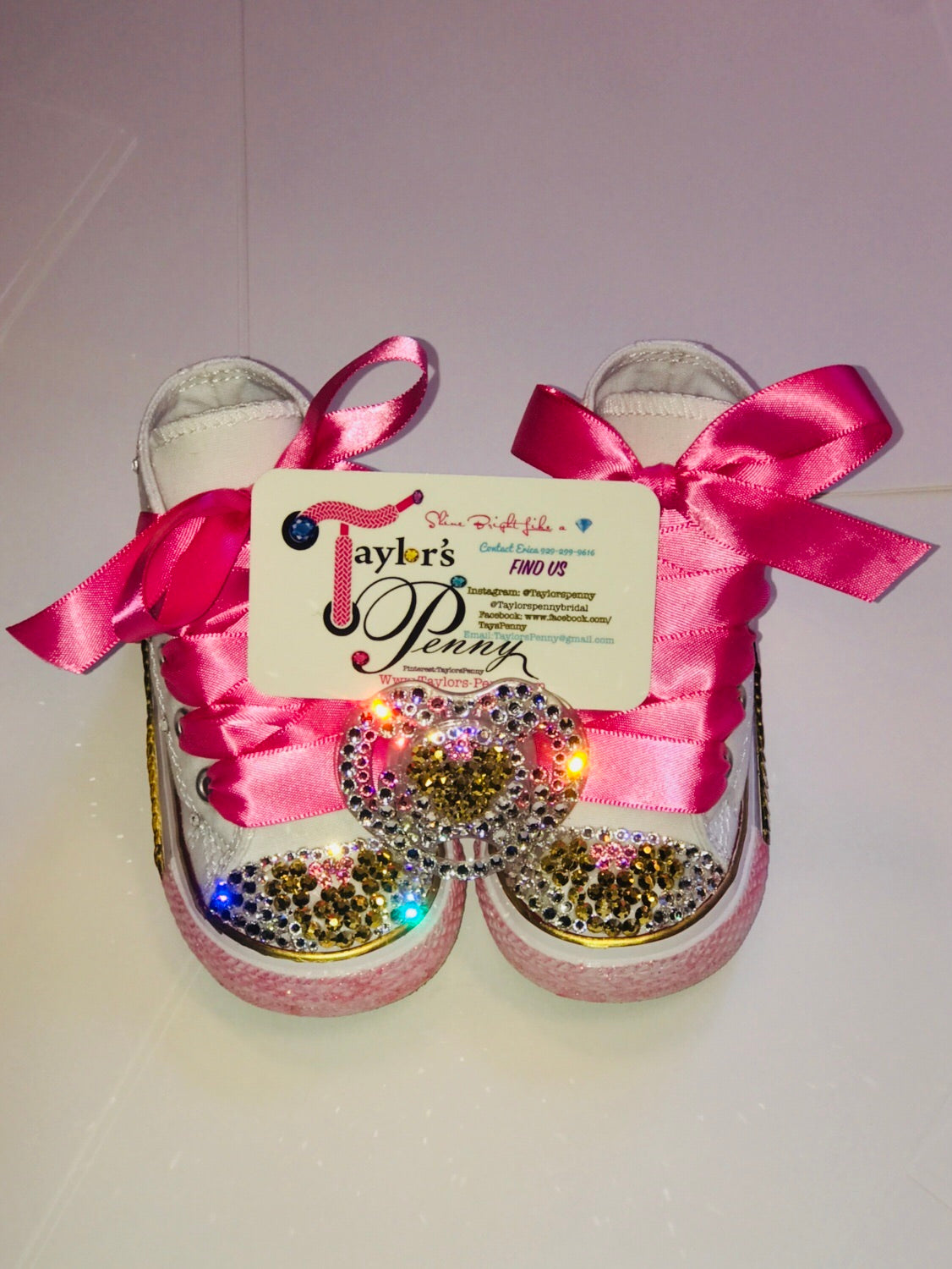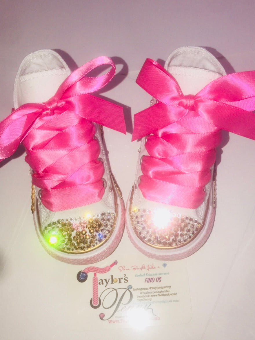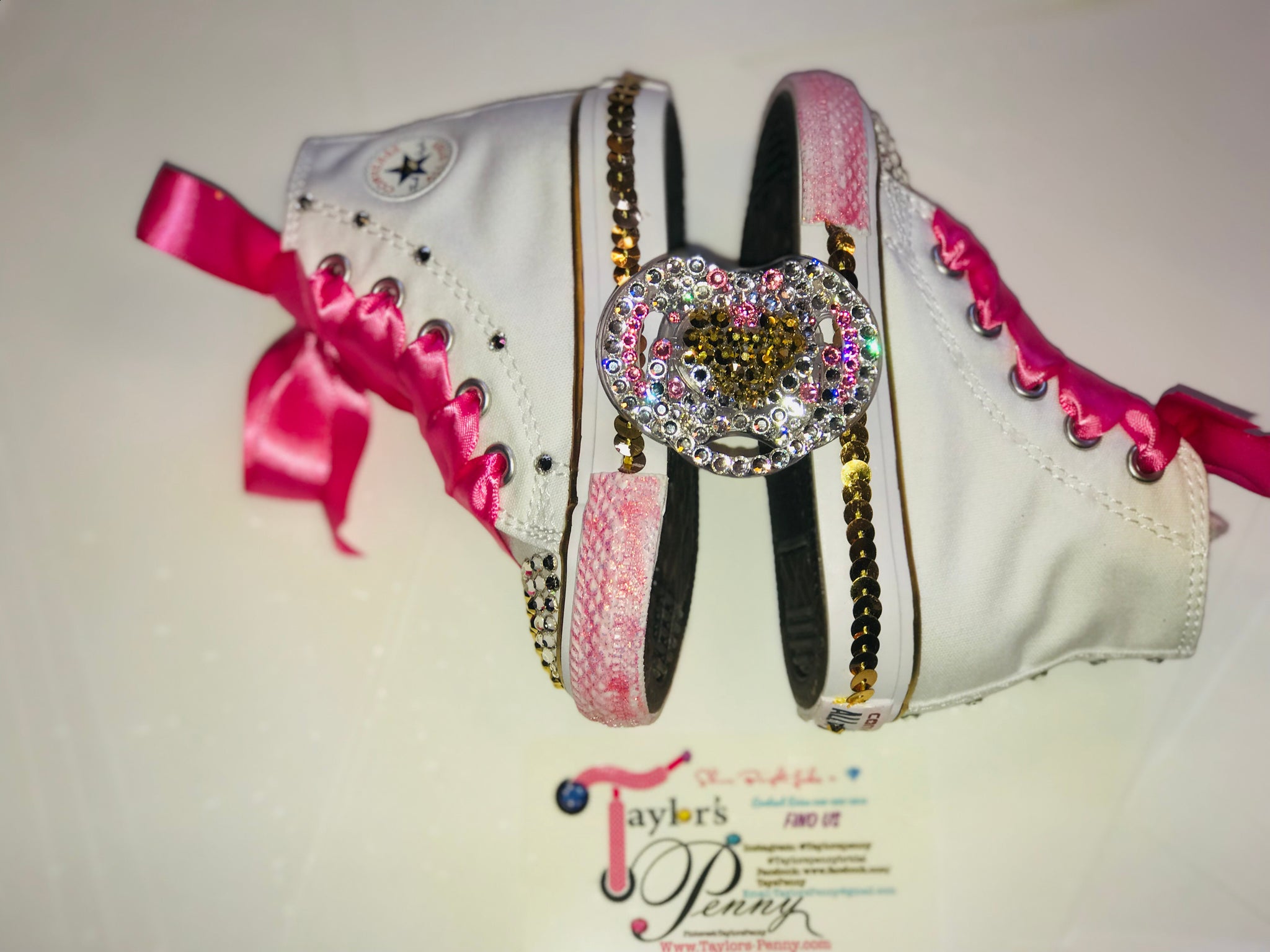 Add a touch of magic and sparkle with our Minnie Mouse Inspired Bling Girls Converse with Pacifier Charm 🎀✨