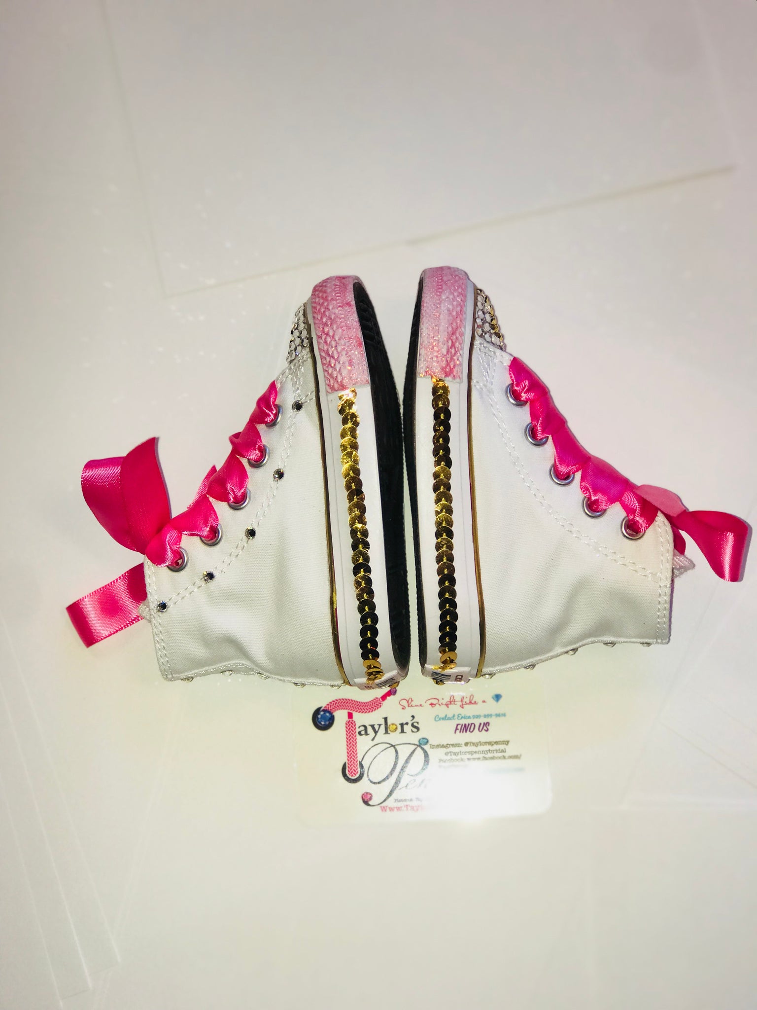 Each rhinestone is carefully hand-placed one by one to ensure a flawless, eye-catching finish. Every pair is made to order and crafted with love and attention to detail.