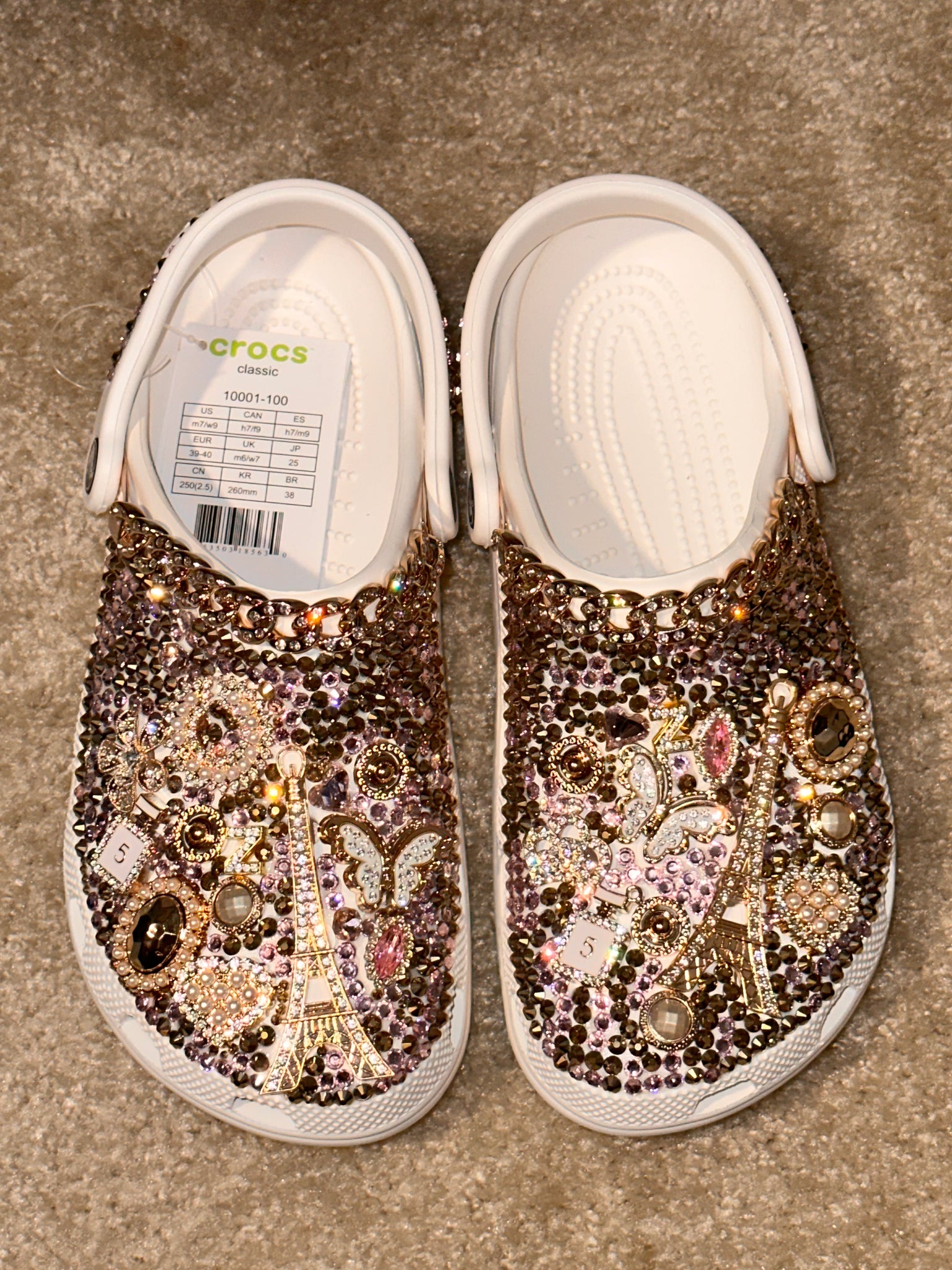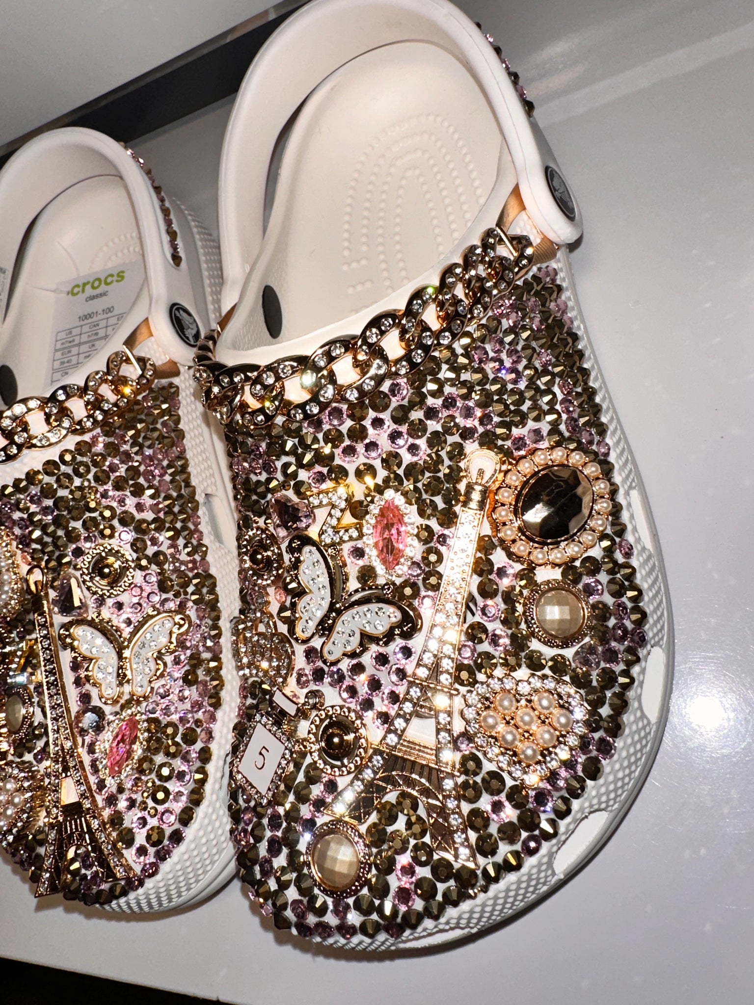 Custom Bling Crocs – Paris-Inspired Sparkle Shoes for Kids & Adults