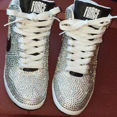 This listing is for embellishment services on your Nike Sky Hi or Dunk sneakers. You supply the shoes — we transform them into a sparkling, one-of-a-kind statement piece.